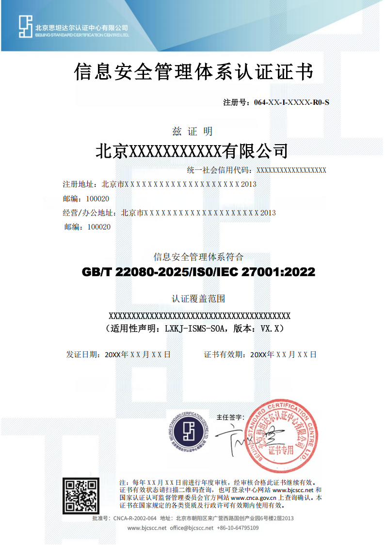 信息安全管理体系(ISMS)认证经国家认证认可监督管理委员会(CNCA)批准,并正式开展认证活动
