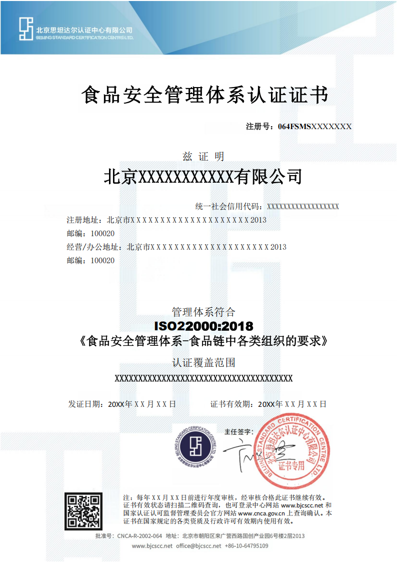 食品安全管理体系认(ISO22000)、危害分析与关键控制点认证(HACCP)经国家认证认可监督管理委员会(CNCA)批准,并正式开展认证活动