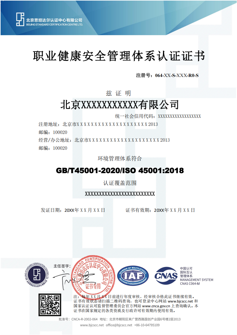 职业健康安全管理体系(OHSMS)认证经国家认证认可监督管理委员会(CNCA )批准 ,并正式开展认证活动