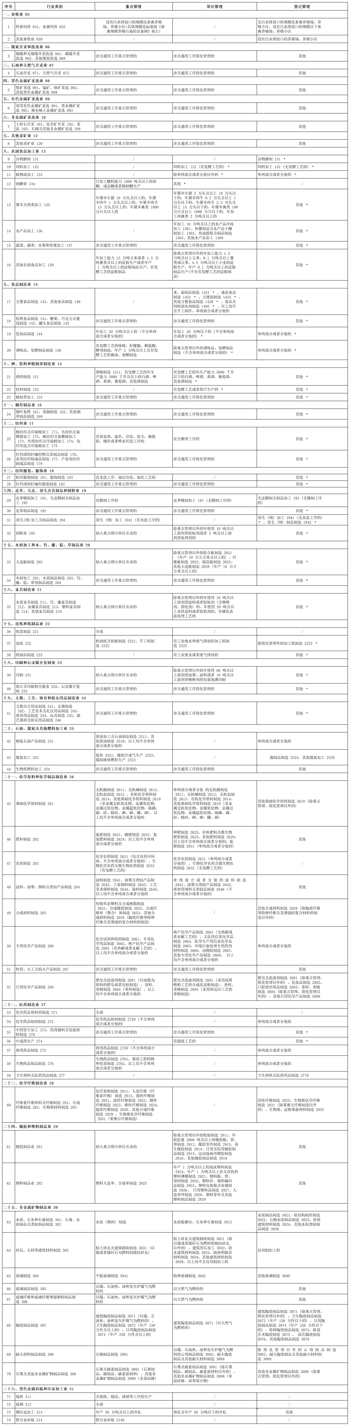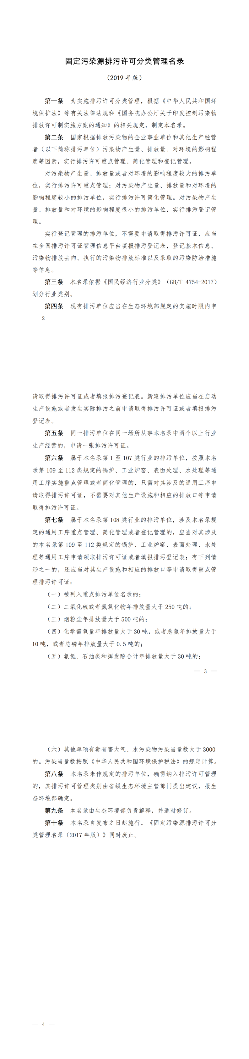 固定污染源排污许可分类管理名录 (2019版)