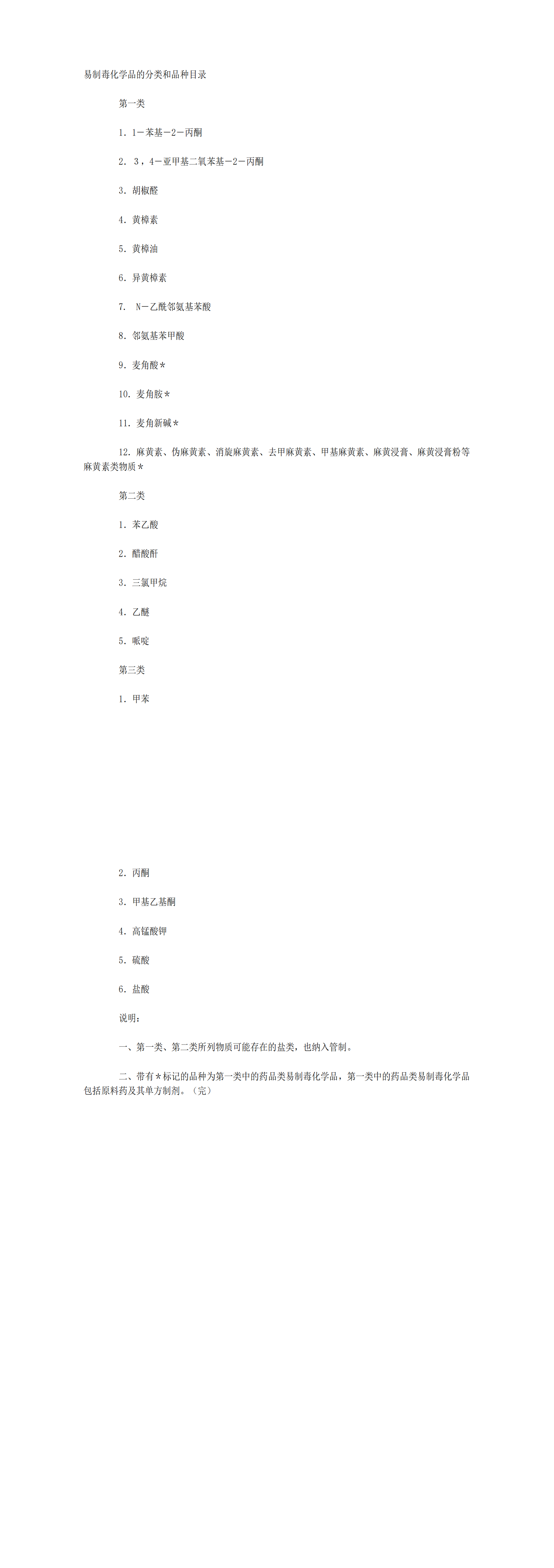 易制毒化学品的分类和品种目录(2021版)